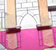 | 4. | Paint the window with the medium stone color. Using a small brush, paint the darker color around the holes in the window. Next paint the lightest stone color in the middle of the braces. Here's what this window looks like glued in. |