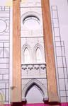 | 5. | Glue the blocks together but do not glue them down to the plan! Allow it to dry before you try to move it. Be especially careful with the large round window. If it comes apart in that area, don't worry about it. It will all be glued together eventually. You will assemble 3 copies of this wall section. |