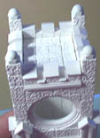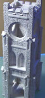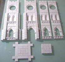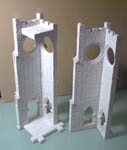 | 11. | You'll want to glue the decorative braces onto the corners. On the upper row, you'll have to miter the peaks slightly with a hobby knife to fit them together. Unfortunately, I didn't have enough room on this mold to put all of the decorative pieces I wanted. I was hoping to add relief statues to the recessed arches and decorative top spikes, but there simply wasn't enough room on the mold form. |