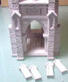 | 6. | As you can see, when glued in place under the arches, they look like stone statues. I left the arches intentionally darker behind the statues (I didn't drybrush any lighter color back there). This helps the statues stand out more. |