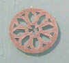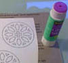 | 2. | Here's what the window looks like placed in the tower. To secure the window in place, put a bead of glue around the outside edge of the paper and secure it behind the round window. Be sure to get the window straight or it will look wrong. | ![]() |