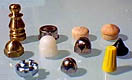 | 12. | The top caps can easily be made out of just about anything. Your local hardware store has tons of items that could work (I've displayed just a few). For this model, I'm using acorn nuts that cost about 10 cents each. Glue bottle spouts also work well for spikes at the top. |