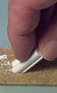 | 5. | Glue roof tiles on the other side of the roof and let it dry completely! When dry, flip the roof completely upside down and sand the peak flat. If you're not sure how far to sand it, place a roof peak block on it and see how it looks. The only reason you sand it is so you can glue the peak on easily. Sand both sides flat along with the ends that will need some sanding too. |