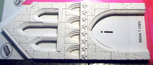| 21. | Finally, glue the window edging and columns in. Then glue the decorative strips on. Make two complete sections. Label them with a permanent marker. |