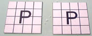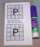 | 29. | For pieces "P", glue the plan down to a cereal box and cut the pieces out. Then glue the blocks on. Make two of these and label them with a permanent marker. |
