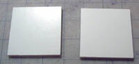 | 2. | The cathedral will be fairly heavy (maybe 15 pounds) so you'll need something durable to build it on. I took a two foot square piece of 1/4" plywood and cut it down to two pieces: 4 1/2" x 15" and 8 1/2" x 15". These will form two halves which fit together. When finished, you will be able to open the cathedral like a dollhouse. I placed the two halves together and sanded the edges of the plywood so it will look more natural when covered with grass (ground foam). |