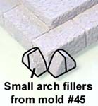 The next strip is made from smooth flat blocks and will be used for the floor in each doorway. Make 2 of these. Build the arch sections and glue the robed figures onto the front. These will form the main recessed doorways on each side. Make 2 of these arches. Finally, make the last pieces using the large arch from mold #45. Make 4 of these arches. |