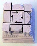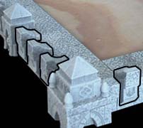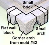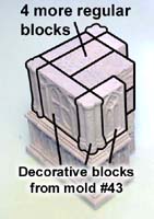 | 5. | To finish off the corners, start with a 1/2" square block surrounded by the decorative blocks from mold #43. Then add the 4 post caps on each corner, along with the 4 pointed top blocks which make the pyramid shaped peak. |