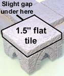 | 3. | You'll need to glue a row of blocks all the way around the plywood. The 1.5" flat tiles will stick up above this row by 1/4". The recesses are made out of square smooth flat tiles which measure 1/2" x 1/2" x 1/4" thick. |