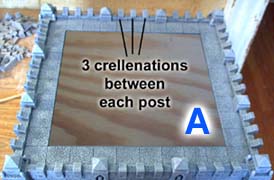 You'll need 36 of these pieces. Evenly space them out and put 3 crenellations between each post. |