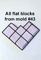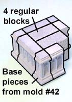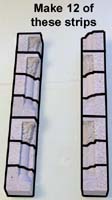 | 21. | We need to use up some extra pieces so we're making these strips out of corner pillar blocks. Try to use an equal amount of each type of block. Make 12. The back thin wall uses blocks from mold #44. The back side of the wall will look a little strange, but you won't see the back when we're finished any way. Make 4 of these wall pieces. |