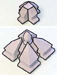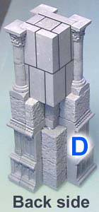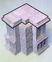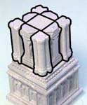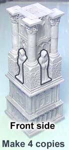 | 19. | Next, glue the pillar piece onto the base. Finish the corner by adding the robed figures onto the front sides. Look at the back and make sure the inside recesses line up. The side walls of the chess set will fit into these recesses. Make 4 complete corners. |