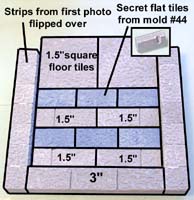 | 3. | Before you move on, take the secret door blocks from mold #44 and glue them together to form 2" long blocks. These are the blocks that have a slight angle on the ends. When finished you should end up with 30 extra 2" blocks. |