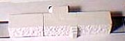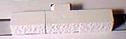 | 3. | We'll also use this same piece as a tee. When placed along the wall, you notice part of the block sticking out. Using a hobby knife, trim off the excess. Using the point of the knife, chip away at the flat surface to texture it. When placed back with the others, you wouldn't know the piece had been trimmed. |