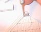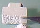 | 6. | For the peak of the roof, cut small pieces, fold them over, and glue them down. Be sure you overlap the strips slightly. When finished with the peak, trim the excess shingles hanging over the sides of the roof. |