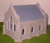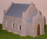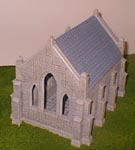| 11. | Make the pillars by gluing two halves of the smooth window trim together. The finished window side of the church should look like this. |