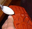 | 1. | For complete instructions on painting, visit the Painting Instructions page. What's shown here is a short, quick version. The first coat of paint is the darkest color. Be sure to mix this first coat thin (about the consistency of milk). If you're using house paint, it's about 1 cup paint to 1/4 cup water. If you're using a tube of paint, add more water. Using a 1 inch brush, drench the paint on so it runs into all the cracks. If you used water based glue be careful! The paint will soften the glue. Once the first coat is on and dry, you don't have to worry about the glue softening again. |