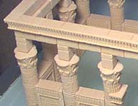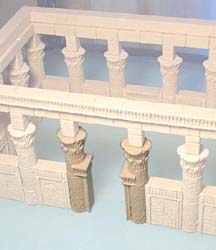 Here is a finished photo of the Egyptian Temple. This is what the temple looks like without the roof slab. For instructions on painting this model, refer to the Antiquing method shown on the painting instructions page. Instructions for making the sand textured base are found on the Tips & Tricks 16 page. |