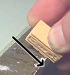 | 5. | Because of the sand-blasted texture, the scraped side of the block may have a sharp edge. To remove this edge, I would scrape the block across the sharp edge of a hard surface. I used the metal edge of my light table. If you don't have a sharp edge, a quick swipe on a piece of sandpaper will do just as good of a job. |