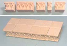 | 4. | I've also added some regular blocks to this mold. These blocks do not have the angle to them, so they can be used for straight square doorways and windows. These photos show the front and back sides of the blocks (except for the small square block at the bottom, which has the design on 2 adjacent sides). |