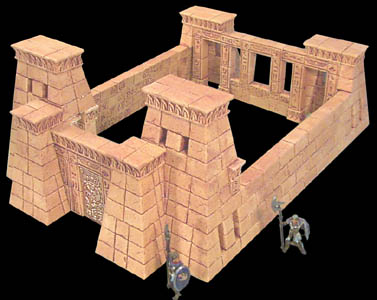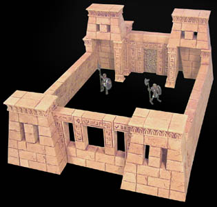 | 12. | For the front side of the temple, place the doorway between the towers. Turn the towers around and add the pillars underneath (you may have to sand them). Join the wall sections to complete the temple. |