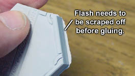 | 3. | Be sure there is no "flash" on the edges of the tiles. You usually will not have this problem if you scrape the face of the mold clean when scraping. If you have any material sticking out around the sides of the tiles, be sure to scrape it off. Otherwise the tiles will not set flat together. |