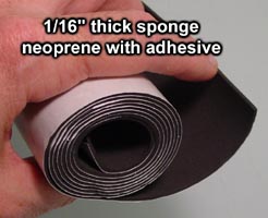 | 2. | I chose to mount everything on self-adhesive black foam. The foam I used was 1/16" thick and had a white backing that you peel off. To find this foam, you will need to do a search for "sponge neoprene with adhesive" and you should be able to find it on Amazon, Ebay or Google. The rolls I purchased were 12" wide x 54" long x 1/16" thick and I needed three of these rolls to have enough rubber to cover all of the floor sections, walls and single tiles. |