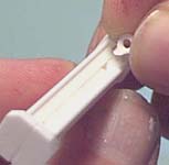 | 1. | To complete a fence section, you first have to glue the back of the post on. I use super glue (CA) for this. The black line shows where the two halves meet. You'll notice that the posts have holes in them. To join fence pieces, put a drop of glue into the holes and press the next fence section into it. |