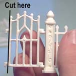 | 6. | If you trim down the gate and fence pieces with a pair of wire cutters or a hobby knife, you can make other uses for it. The second photo shows how the gate can be used as a permanent gate to close off areas. The third photo shows using the gate as a window tracery. |