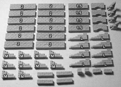| 4. | The ruined blocks can be used to make full blocks. Simply take two identical blocks and fit them together to make a full block. These photos show the length of each of the blocks after being assembled. This way you won't waste any blocks if you don't want to use them as ruined blocks. |