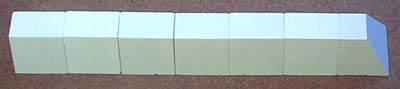 | 2. | Here are the remaining rows to the pyramid. When they are dry, each of the four strips of blocks will be glued together to form each layer of the pyramid. |
