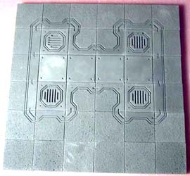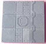 For this set, you will need to cast the #301 Starship Wall mold 24 times, and the #270 Starship Deck mold 30 times. I cast these pieces out of gray dental plaster, but you can use white plaster instead if you like. The casting will take the average person about 2 full days, and the pieces can be glued together in a few hours. After you complete these, feel free to make your own custom pieces any size you want. The beauty of casting pieces is that you can always make more and build whatever you want. |