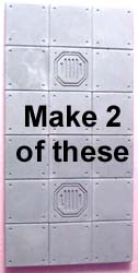 | 25. | Glue floor tiles onto the sides of these pipe panels. Notice that two of the panels are a mirror of each other. Glue two of the same type back to back. |