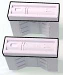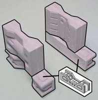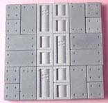 | 13. | Glue these blocks together from mold #301. The bottom row of blocks are 1" long and the upper row of blocks are 1/2" long. Cap it off with a stack of two small square floor tiles and the decorative blocks around them. Make 2 of these. |