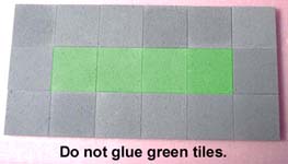 | 5. | The center photo uses blocks from mold #301. Do not glue the tiles shown in green. |