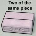 | 23. | Glue two of the same blocks flat side up. Add the long thin blocks (pipe side out) on top. Make two rounded corners as shown. |