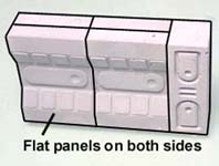 | 11. | Glue two identical panels back to back and cap them with the pieces shown. Glue two doors back to back. |