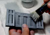 | 4. | The last step is to lightly dry brush everything a light gray. The color I'm using is from the Castle Gray Painting Instructions page. This step is done very carefully by having very little paint on the brush and very gently brushing over the piece with several strokes to lightly bring out the details. Most likely you will have to wash your brush out and dry it completely after every two or three pieces you paint. Be sure to watch the video above for a better idea on how to do this. The wall pieces are also painted using this same method.  |