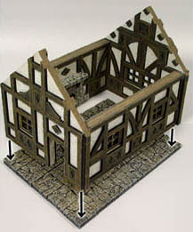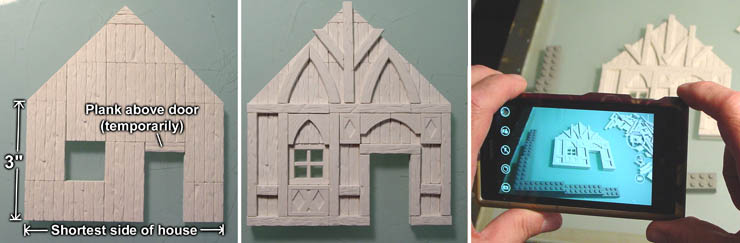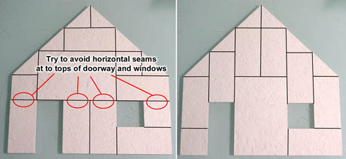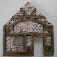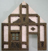 The houses in this example are 5" x 7" in size, which is the same size used in the Steps In Planning Your House section. To build one of these houses you will need 14 castings of a panel mold and 11 castings of the Half Timber mold. Roof instructions are on the Tips & Tricks 5 page.