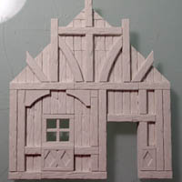 | 6. | If you have made a fireplace, paint it and glue it over the 1" square hole in the wall. Then you can glue your planks around it to finish the wall. I made the fireplace using mold #263. |