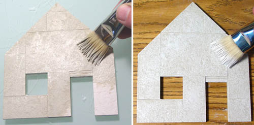 | 5. | You will notice that this will leave a white edge along the tops of your peak walls. You can cover this up using a medium to dark brown paint. Almost any color of brown will do because you will only see this when the roof is removed. |