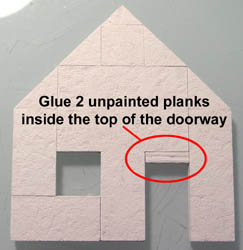 | 9. | Since I am gluing these wall sections on top of the floor, I need my doorways to be 1 3/4" tall. To do this I'm going to glue 2 planks across the inside top of the doorway. If for some reason you forget to do this, you can always glue painted planks in here later and it won't hurt anything. |