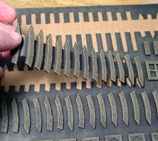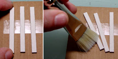 | 10. | Check to see if your pieces are stuck down properly by taking a wide brush and brush across them with medium pressure on the cardboard. Just pretend you are dry brushing your planks with paint. If they do not come loose from the cardboard then you know they will stay in place when you go to paint them. |