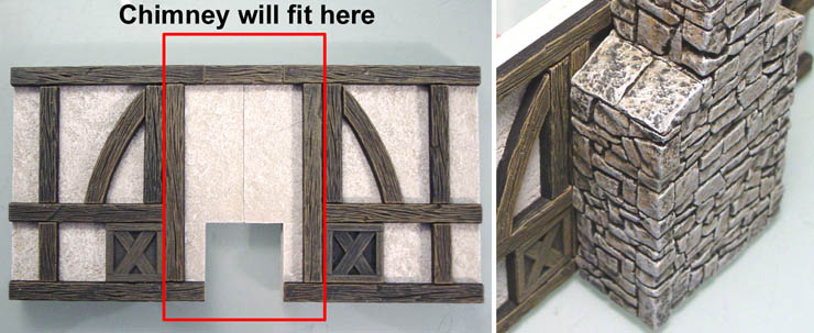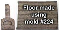 | 7. | On the back side of the fireplace, be sure to put down planks directly under where the chimney will set against. This will give you a nice flat surface to glue the chimney to. I made the chimney using mold #263. |