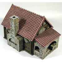 The chimney on the rubble house (right column) was made using pieces from molds #263 and #259. The clay tile roof was made using mold #230.