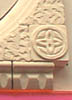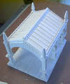 | 8. | Here is a close up of the corner. You need to add the pieces shown here. Start with the two column halves, then glue a flat square tile to cap off the top. Then glue two halves of the decorative point together and glue them on top. Do this for all four corners. |