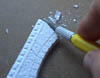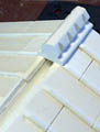 | 14. | Tape a piece of sandpaper to your work surface and gently sand the top of the roof flat. Now glue the full pieces of decorative trim along the peak of the roof. |