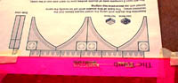 | 5. | For the large front arch, glue decorative edge onto the slanted top. Using a hobby knife, trim off the excess and miter the edges straight with the sides of the arch. Do this for the other side of the arch, and glue them together. Now glue the backside of the large arch on, but don't put decorative edge on the other side. Make two complete copies of this arch. |