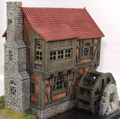 To build the watermill shown here, you will need: 20 castings of mold #226 wooden beam mold. You will also need to print out the watermill building plans. The printed plans show where every block goes. The instructions below only tell you what problems to look out for when assembling the mill. This is a fairly complex project. If this is your first building project using Hirst Arts molds, I strongly suggest you choose a more simple project instead. Please follow these instructions in order. For example, glue together all of the wooden and stone sections in Step 1 before moving on to Step 2. However, you may glue together the sections within a certain step in any order you like. For example, you may glue together the wooden and stone sections in step 2 in any order. But all sections in step 2 should be completed before moving onto step 3. |