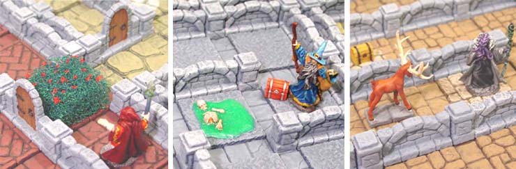 Here is what all 6 boards look like when set together. Click on the photo to view a larger version. To see how to make accessories for this board shown below such as a slimecube, killer ooze, chunk of stone and various effects markers, take a look at our Tips & Tricks 25 page. |